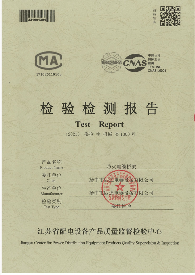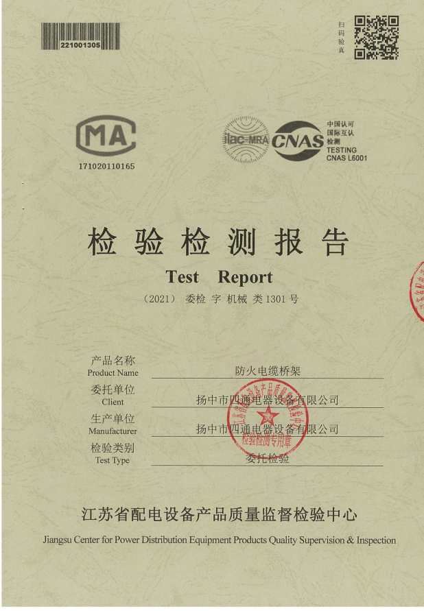 防火電纜橋架檢驗(yàn)檢測(cè)報(bào)告1300號(hào)