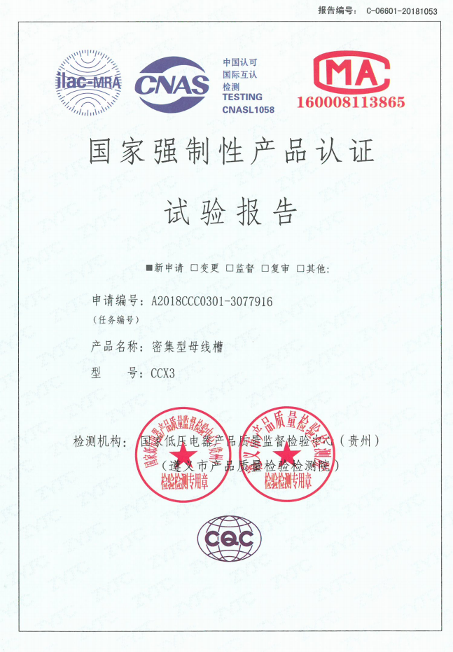 CCX3密集型母線槽國(guó)家強(qiáng)制性產(chǎn)品認(rèn)證試驗(yàn)報(bào)告