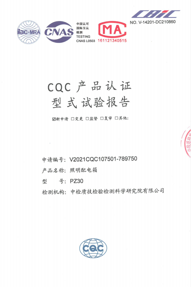PZ30照明配電箱產(chǎn)品認(rèn)證型式試驗(yàn)報(bào)告