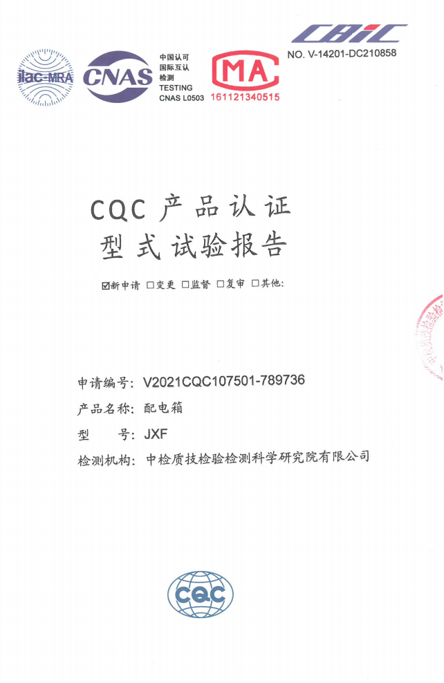 JXF配電箱產(chǎn)品認(rèn)證型式試驗(yàn)報(bào)告