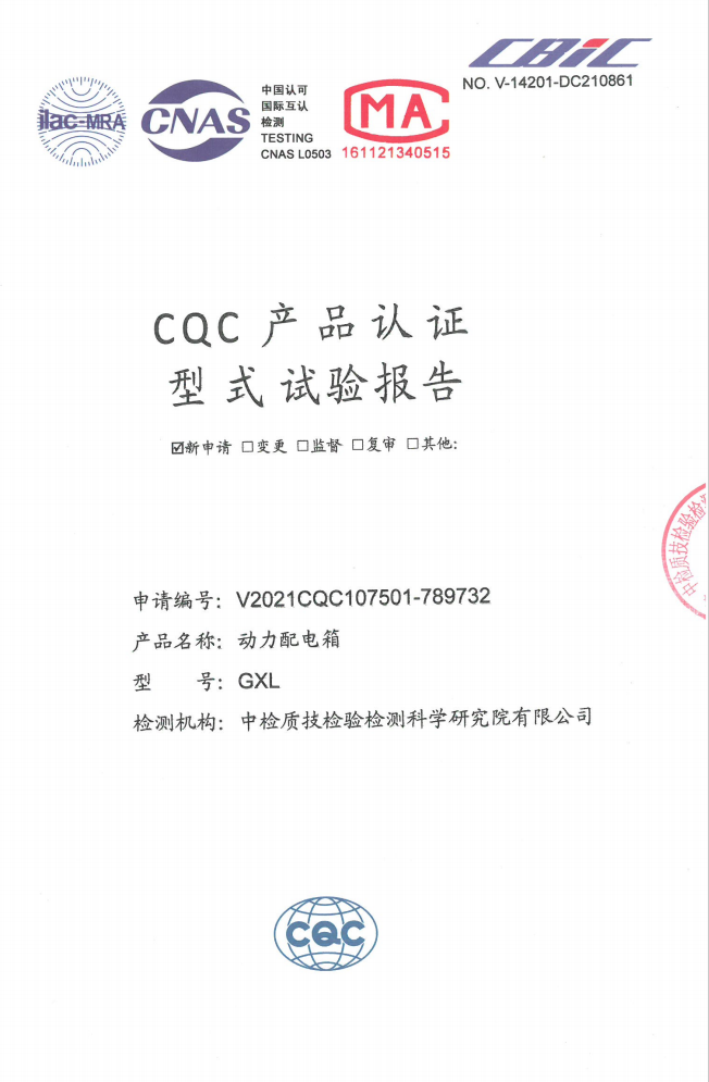 GXL動(dòng)力配電箱產(chǎn)品認(rèn)證型式試驗(yàn)報(bào)告