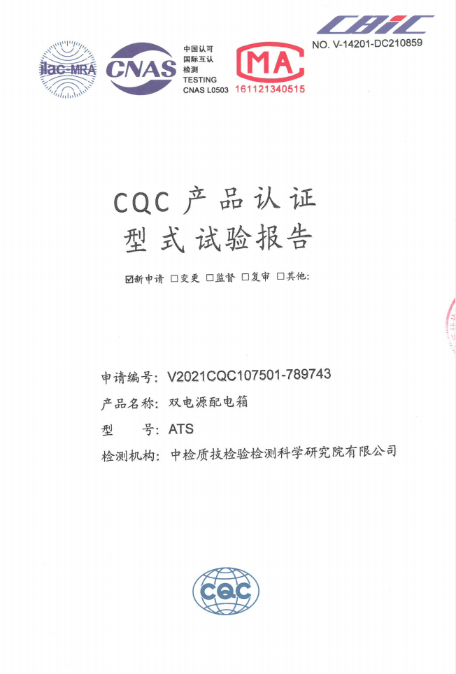 ATS雙電源配電箱產(chǎn)品認(rèn)證型式試驗(yàn)報(bào)告
